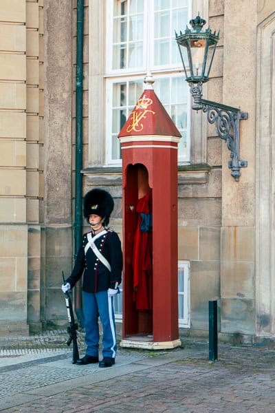 Täglich um 12 Uhr findet hier der traditionelle Wachwechsel der königlichen Garde statt. Besonders beeindruckend ist der feierliche Umzug, wenn die Garde mit Musik vom Schloss Rosenborg durch die Stadt marschiert, um die neue Wache abzulösen. Bei Anwesenheit des Königs fällt die Zeremonie besonders feierlich aus. Früh dort sein lohnt sich an Wochenenden im Sommer, da die Wachablösung bei Besuchern überaus beliebt ist. Wer doch nur einen Platz weiter hinten ergattern konnte, kann das Ende der Veranstaltung abwarten, da sich aufgrund der Länge, der Platz dann langsam lehrt.
