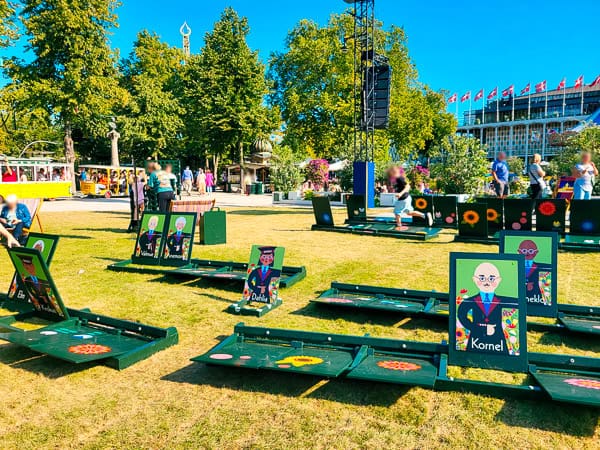 Wenn ihr euch lieber ein Picknick einpacken wollt, gibt es in der Mitte des Tivoli eine große Grünfläche mit Liegestühlen und einigen übergroßen Gesellschaftsspielen.
