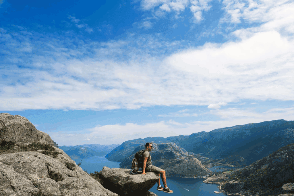 Die größten Wunder finden sich oft abseits der Bucket List. In Norwegen wollten wir nicht die berühmte Wanderung auf den Preikestolen machen, die gefühlt jeder macht. Stattdessen sind wir spontan abgebogen. Der Lohn? Eine wunderschöne Wanderung in der Nähe, bei der wir kaum jemandem begegnet sind. Wir hatten eine genauso spektakuläre Aussicht – und sogar unseren eigenen, ganz privaten „Mini-Preikestolen“. Solche Highlights sind Geschenke, die du nur bekommst, wenn du bereit bist, das Geplante zu verwerfen.
